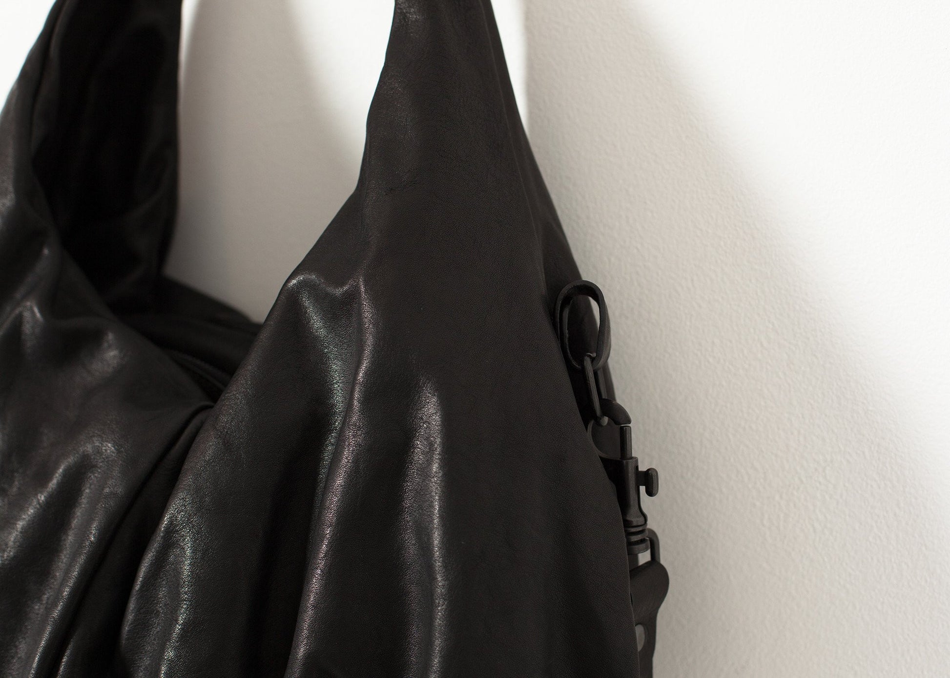 Married aesthetics of innovation and tradition, Marséll crafts leatherwear of mastering technique. Where modern classism takes wearable shape, anticipate artistic expression epitomized in leather footwear and bags. This enticing piece presents accessible artistry. Beautifully folded material is intoxicating to touch and see. Top zip for main closure. Two interior lining zip pockets. Two hidden side zip pockets. Adjustable strap with luggage tag. Color Black. 100% Leather, 100% Linen Lining. Made in Italy.