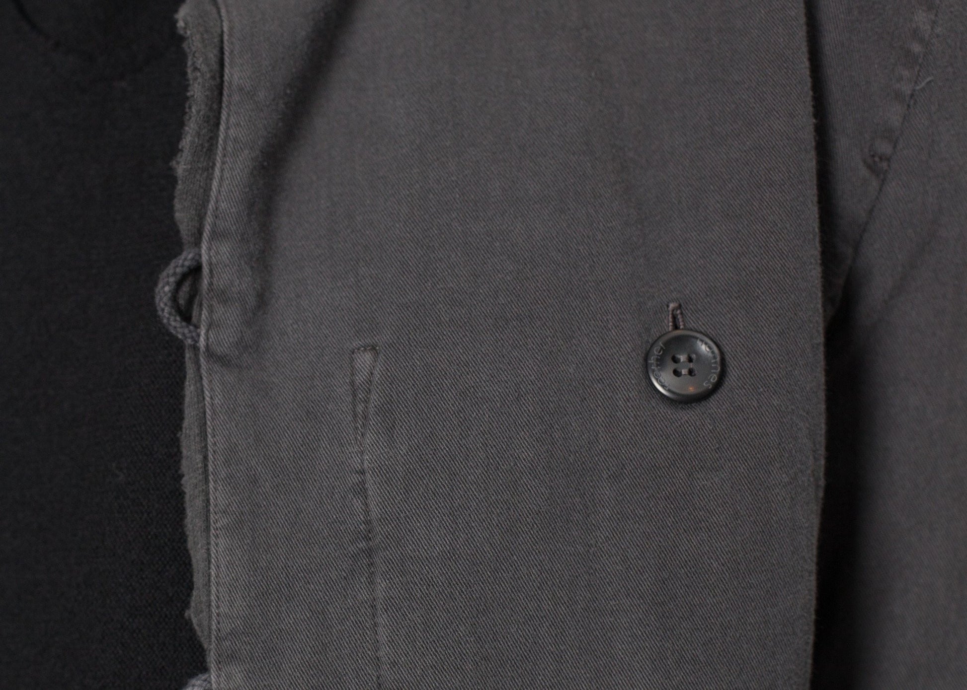 Understated yet classic, Hannes Roether’s pieces offer versatility through timeless silhouette. Woven jacket with unfinished hems. Standing collar. Hidden interior breast pocket. Fully lined. Color Tar. 100% Cotton. Made in Czech Republic. Addis is wearing a size Medium. Addis is 6’2”, Chest 38.5”, Waist 31”, Inseam 32”