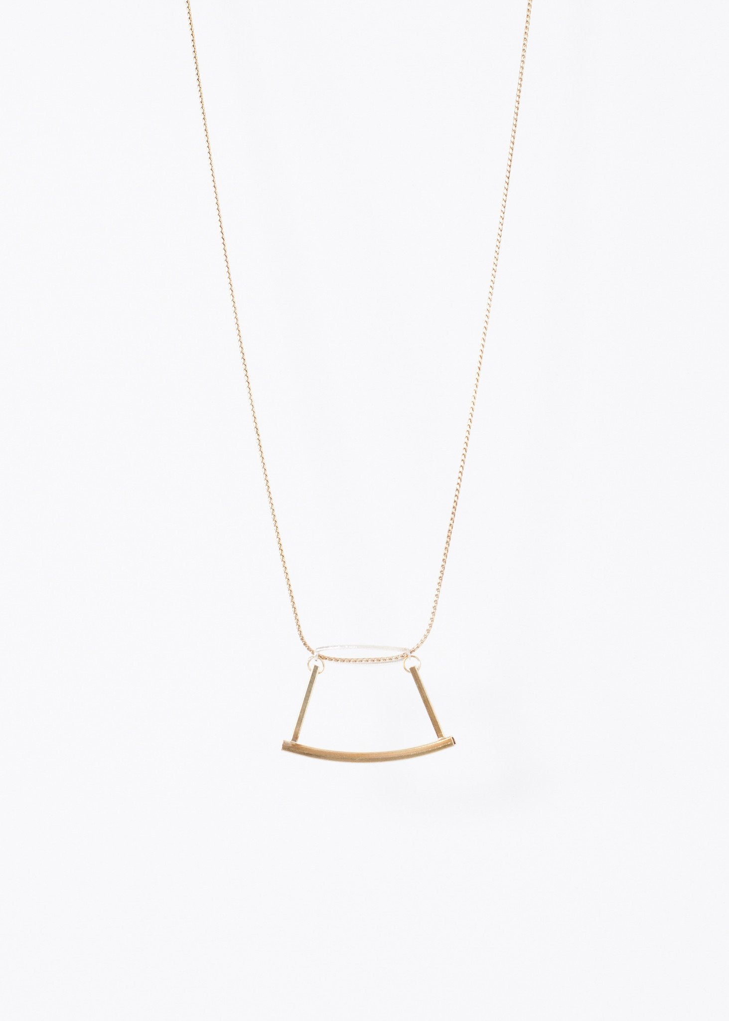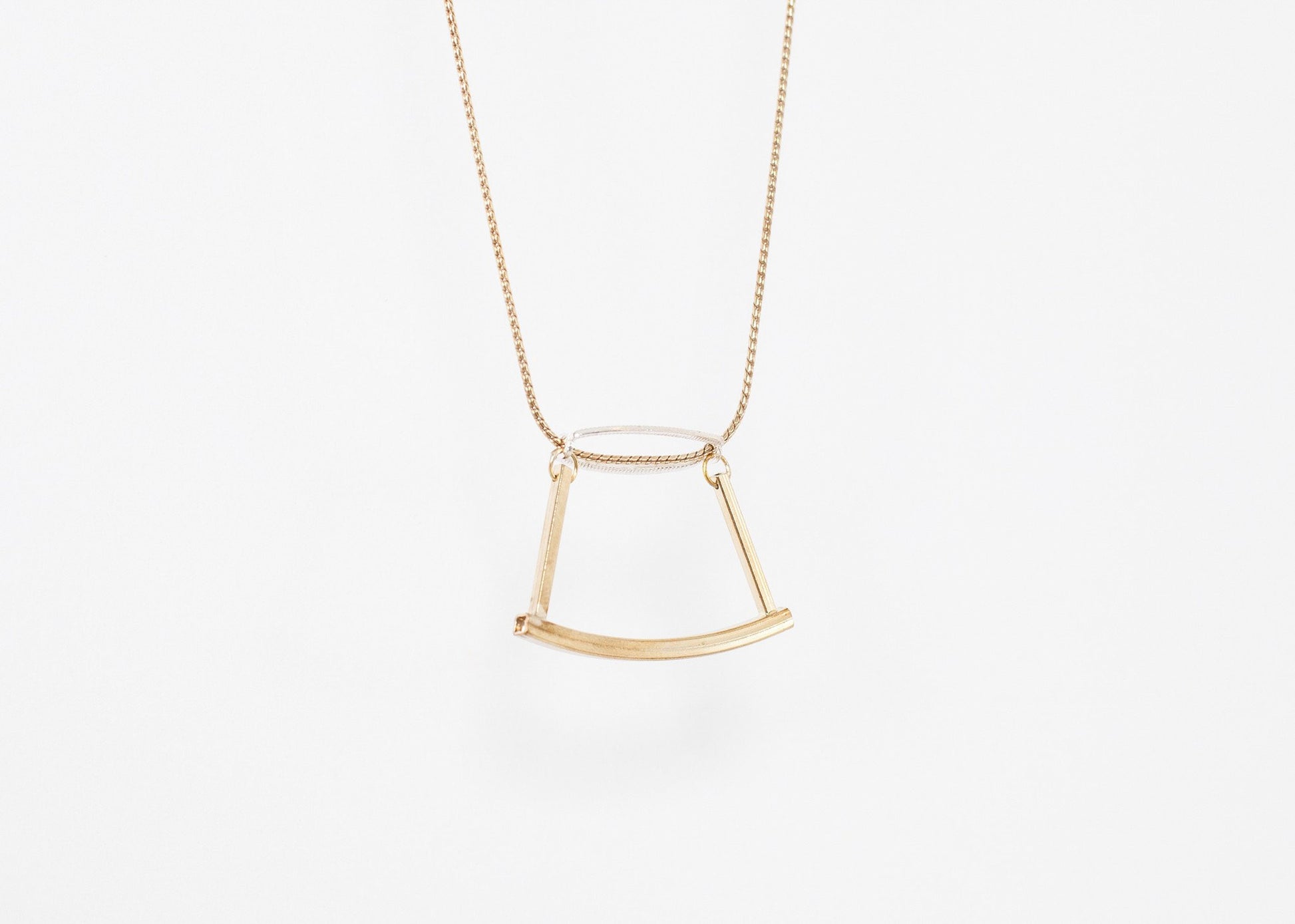 "Spacious beauty," a concept well depicted throughout new designer Sayaka Davis' collection. With empty space as the emphasis, the garment themselves become the subject. The 2015 line embodies Sayaka's artistic vision with effortless composure to every piece. The Miya is sensational in its pendant design and use of metal. Color Gold. Made of Plated Metal. Made in U.S.A.