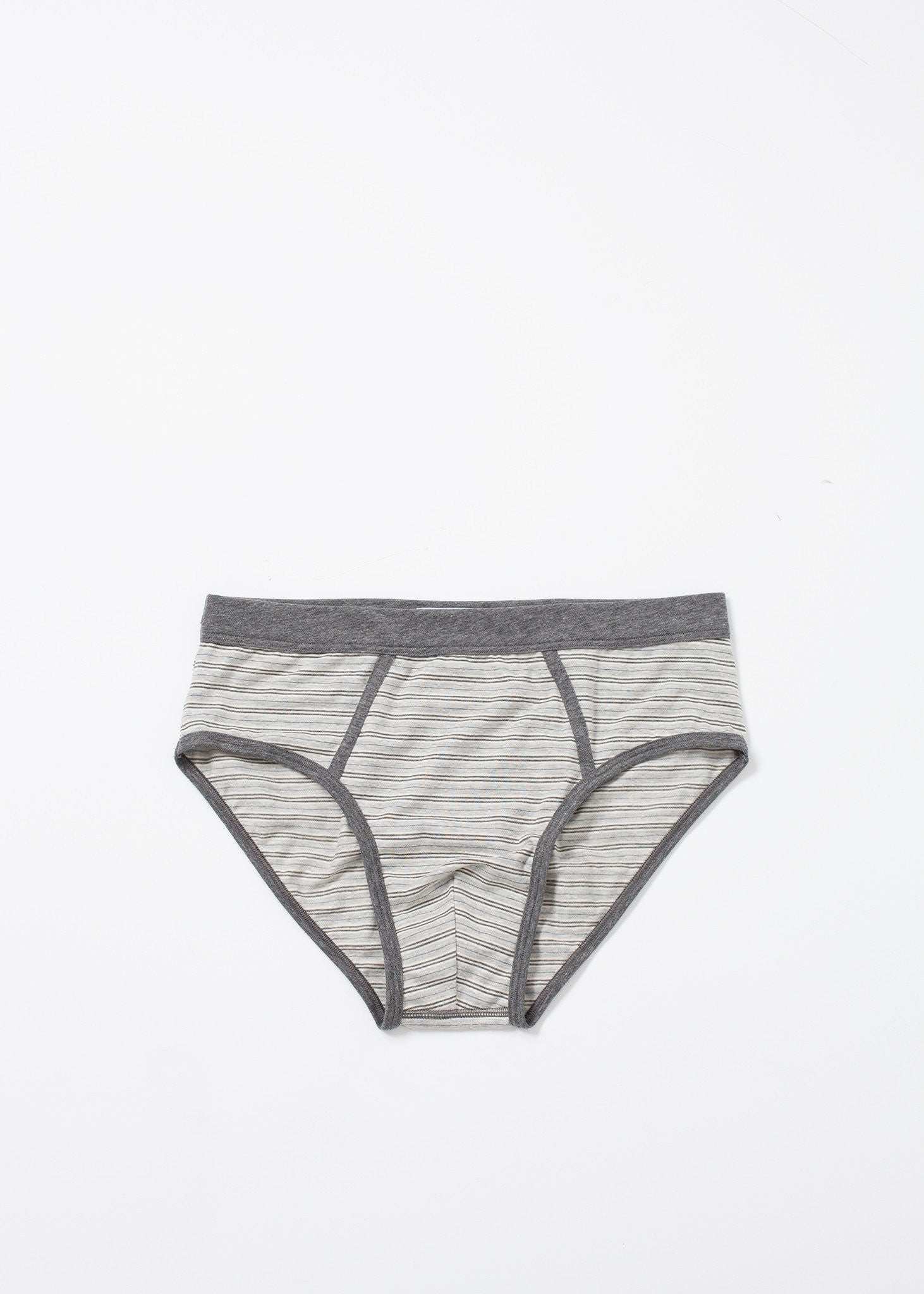 This prewashed cotton brief is composed of the finest gauge for the softest materials. Offers stretch and softness in wear. Elastic waistband for ease. Etiquette. Color Heather Grey. 95% Cotton, 5% Elastane. Made in Italy.