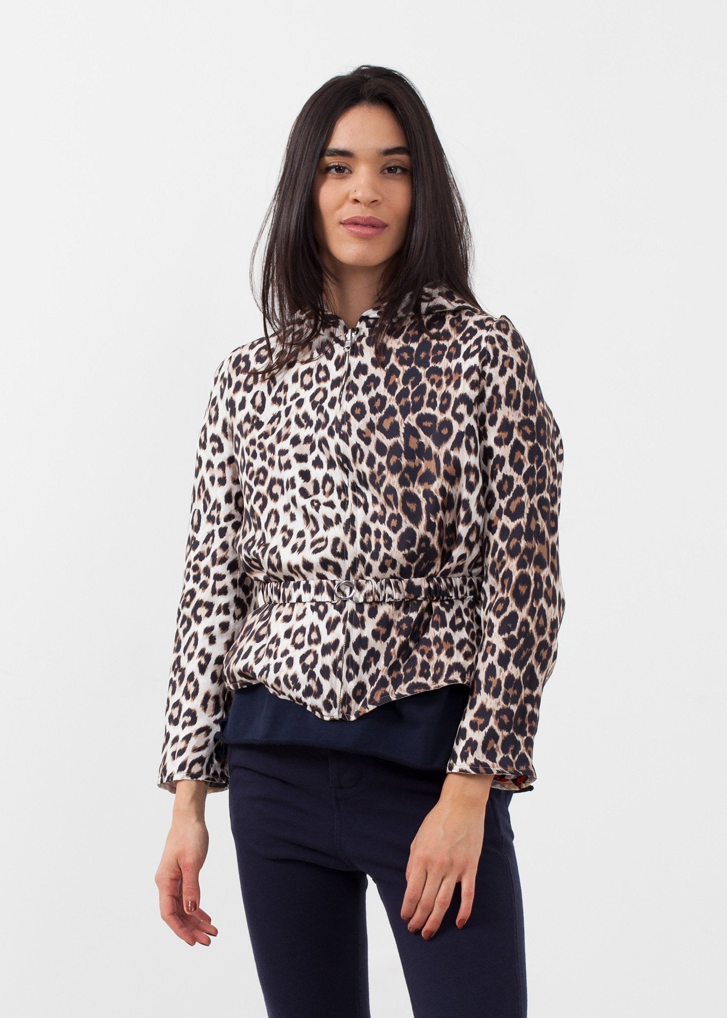 With a delectable selection of prints, the Hoodie suggests gorgeous chaos. Zip closure at front. Crew neckline. La Prestic Ouiston. Color Arlequins. 100% Silk. Made in Poland. Ashley is wearing a Size 1.
